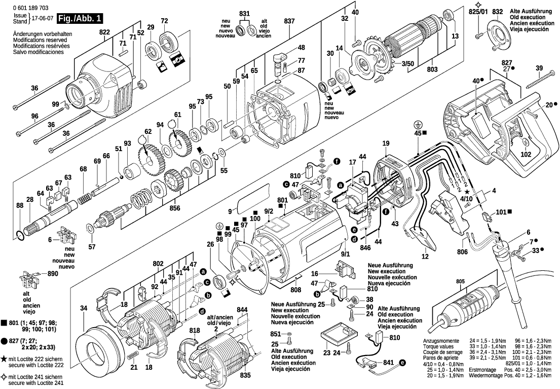 Spare parts list of model Bosch 0601189708 ( GDB1600WE )