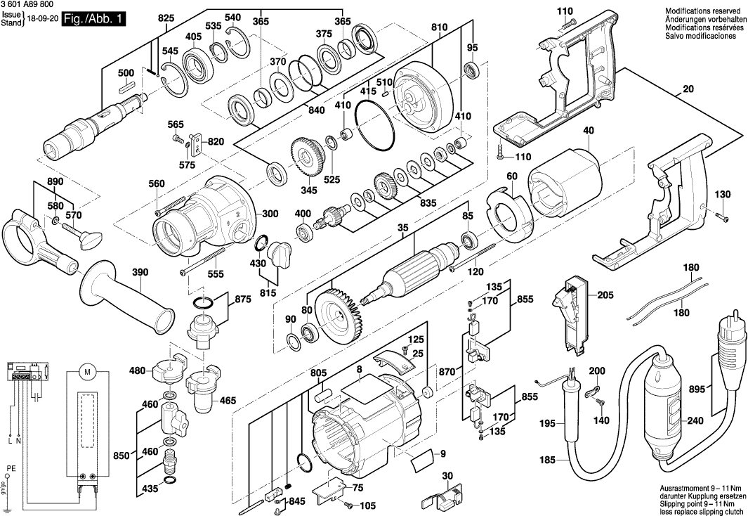 Technical drawing of model Bosch 3601A89800 ( GDB180WE )