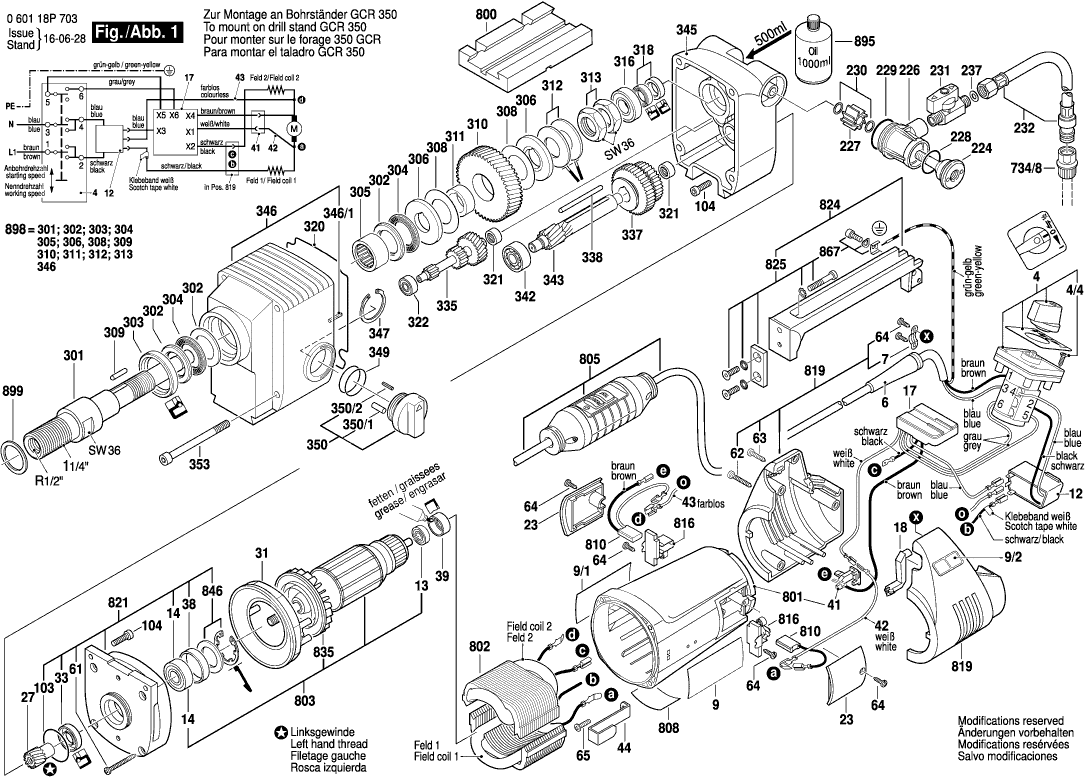 Spare parts list of model Bosch 060118P708 ( GDB2500WE )