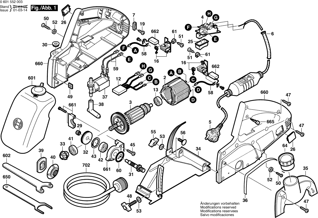 Spare parts list of model Bosch 0601552008 ( GDC42W )