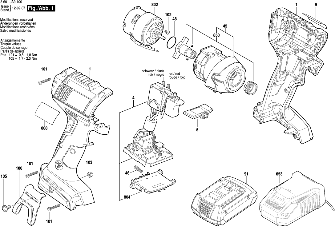 Technical drawing of model Bosch 3601JA9100 ( GDR18-LI )
