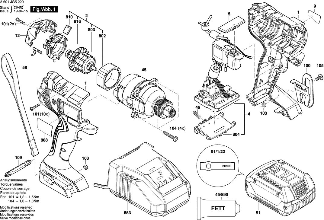 Technical drawing of model Bosch 3601JG5220 ( GDX180-LI )