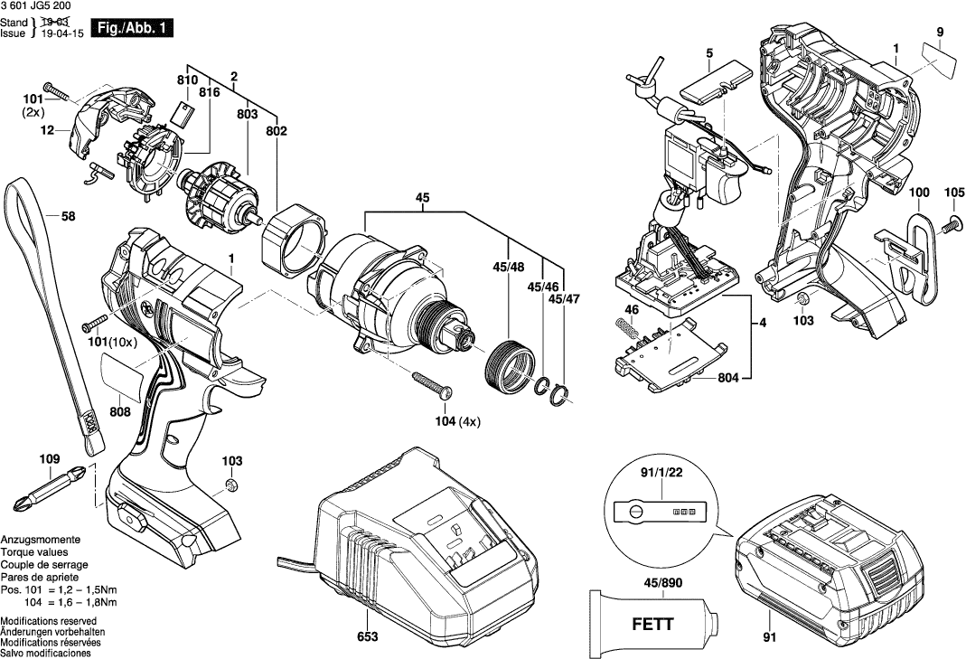 Spare parts list of model Bosch 3601JG5200 ( GDX18V-180 )