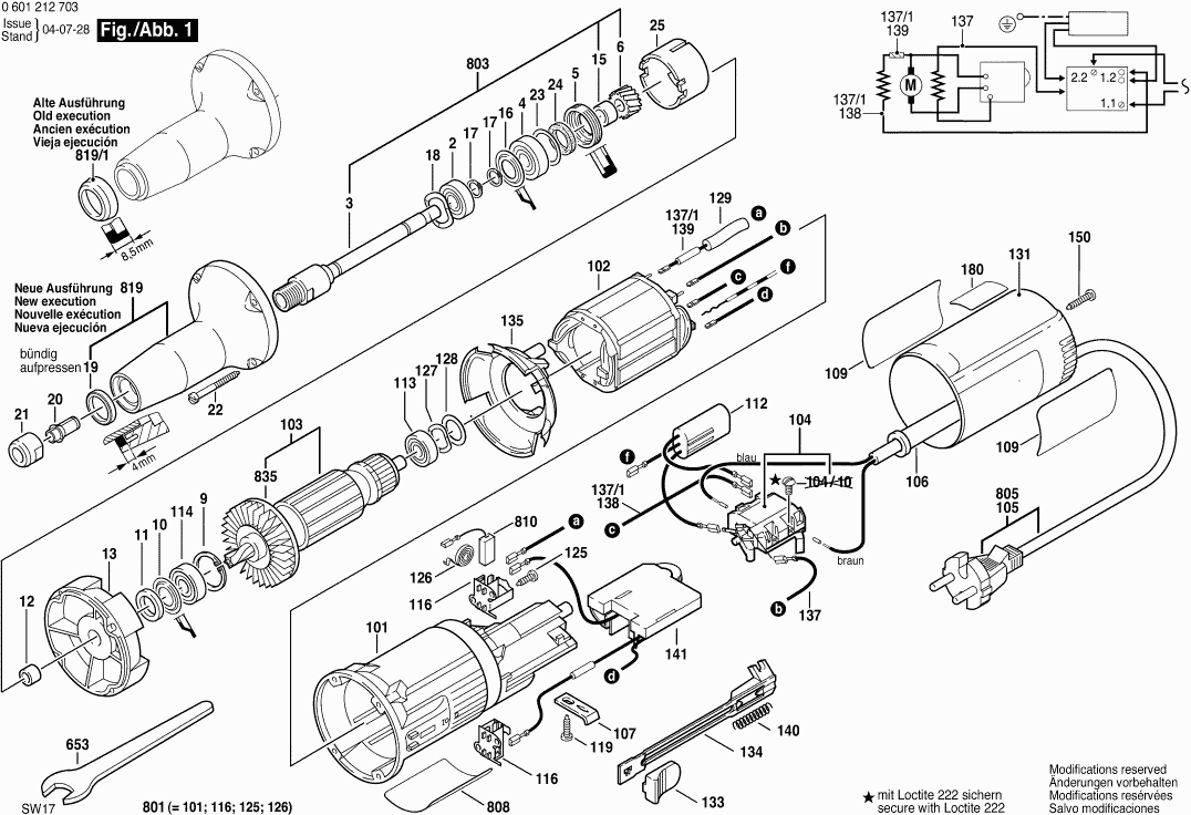 Here you will find all available parts and drawings of the 'Bosch 0601212703 ( GGS7C )'. From here you can order all desired parts directly. Many parts must be ordered from the manufacturer, depending on the brand, this takes one to four weeks. All the information we have is on our website, we cannot advise you on what you need, for that you will need to return the machine for repair. Please note the following when ordering: