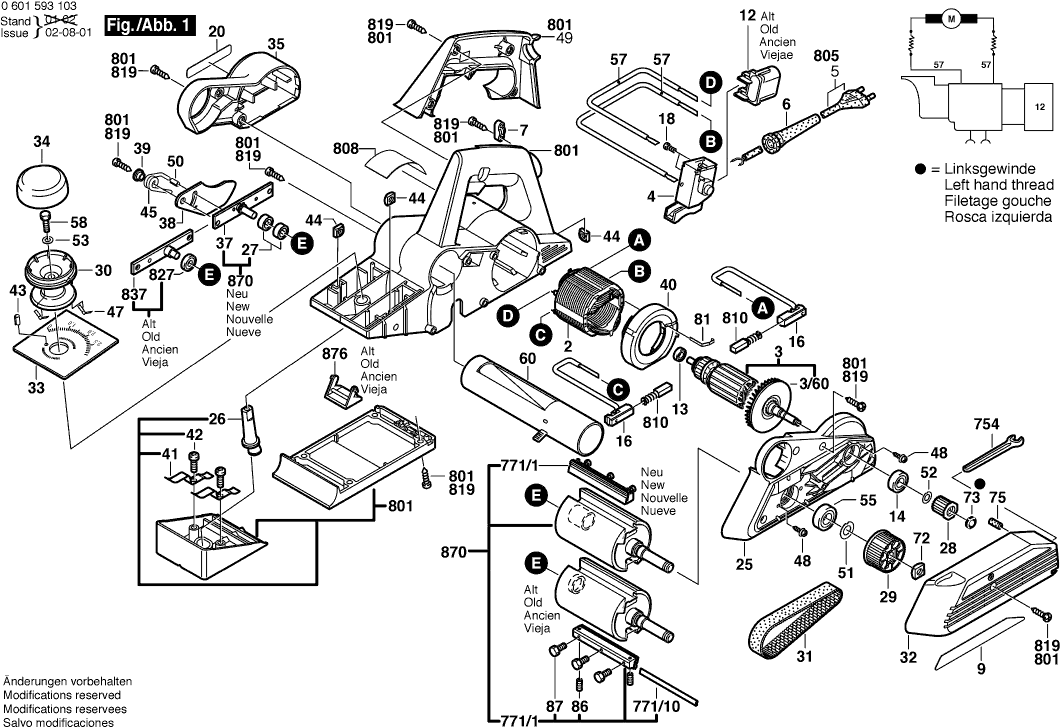 Here you will find all available parts and drawings of the 'Bosch 0601593166 ( GHO31-82 )'. From here you can order all desired parts directly. Many parts must be ordered from the manufacturer, depending on the brand, this takes one to four weeks. All the information we have is on our website, we cannot advise you on what you need, for that you will need to return the machine for repair. Please note the following when ordering: