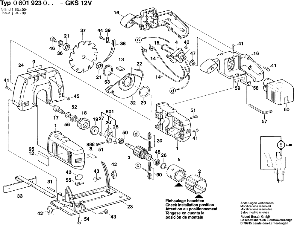 Here you will find all available parts and drawings of the 'Bosch 0601923003 ( GKS12V )'. From here you can order all desired parts directly. Many parts must be ordered from the manufacturer, depending on the brand, this takes one to four weeks. All the information we have is on our website, we cannot advise you on what you need, for that you will need to return the machine for repair. Please note the following when ordering: