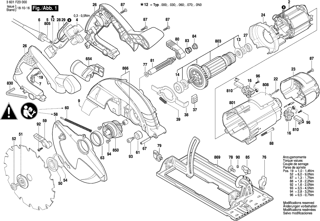 Spare parts list of model Bosch 3601F23000 ( GKS190 )