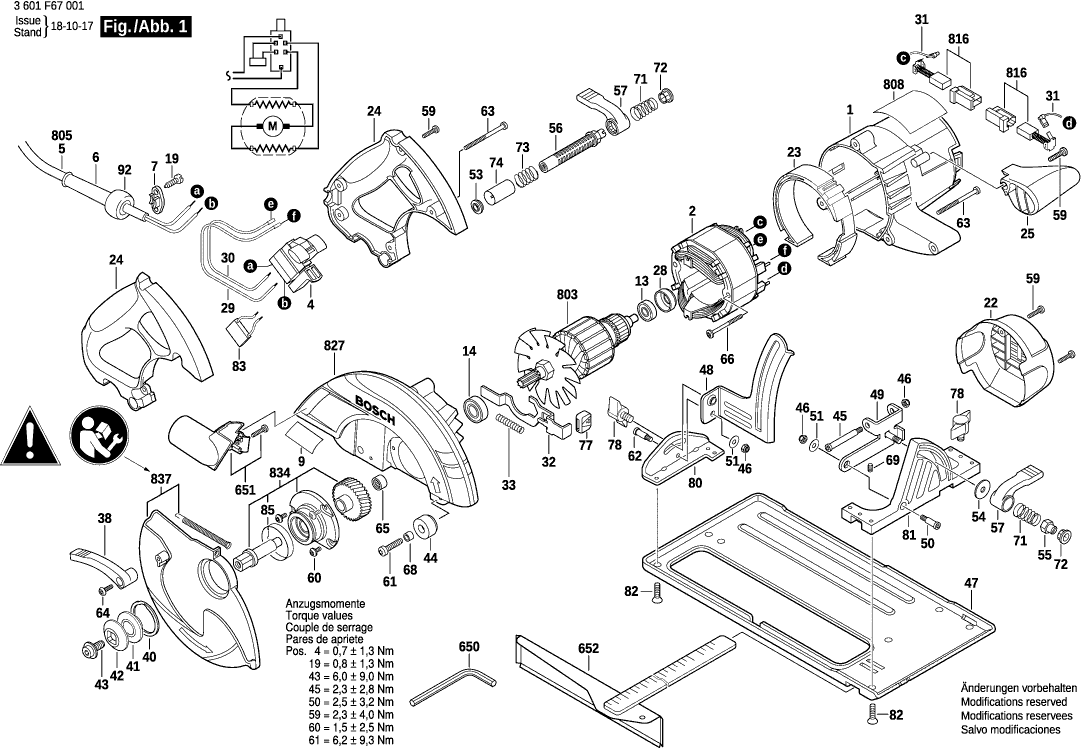Spare parts list of model Bosch 3601F67001 ( GKS65 )