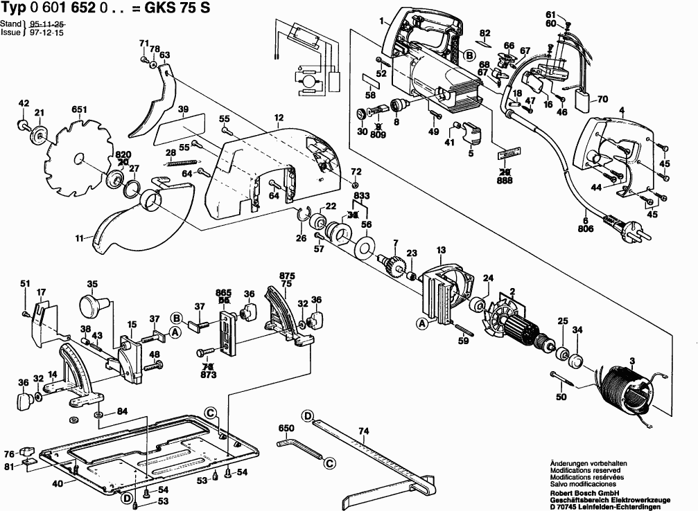 Spare parts list of model Bosch 0601652003 ( GKS75S )