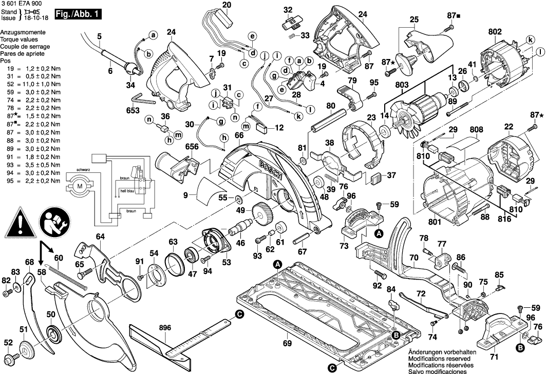 Spare parts list of model Bosch 3601E7A900 ( GKS85G )
