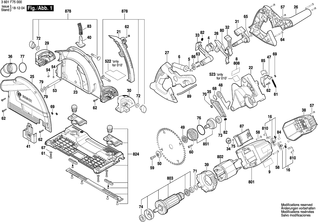 Here you will find all available parts and drawings of the 'Bosch 3601F75000 ( GKT55GCE )'. From here you can order all desired parts directly. Many parts must be ordered from the manufacturer, depending on the brand, this takes one to four weeks. All the information we have is on our website, we cannot advise you on what you need, for that you will need to return the machine for repair. Please note the following when ordering: