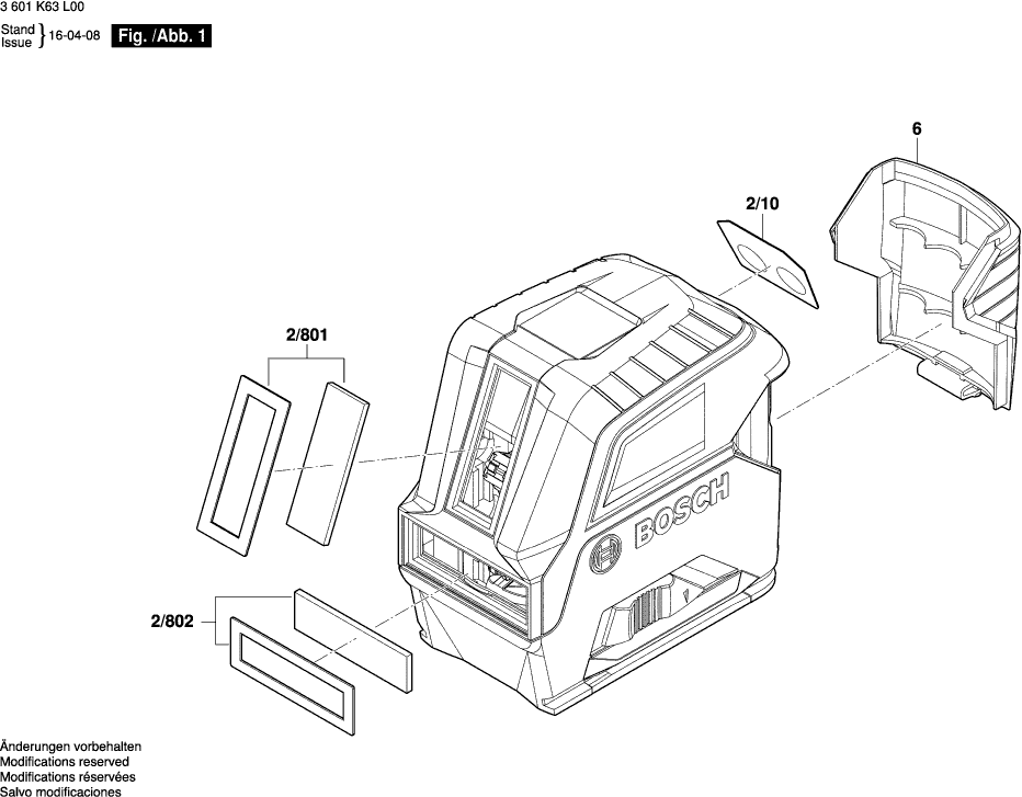 Here you will find all available parts and drawings of the 'Bosch 3601K63L00 ( GLL2-10 )'. From here you can order all desired parts directly. Many parts must be ordered from the manufacturer, depending on the brand, this takes one to four weeks. All the information we have is on our website, we cannot advise you on what you need, for that you will need to return the machine for repair. Please note the following when ordering: