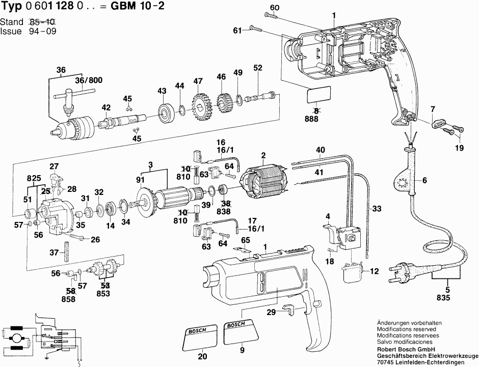 Spare parts list of model Bosch 0601128003 ( GMB10-2 )
