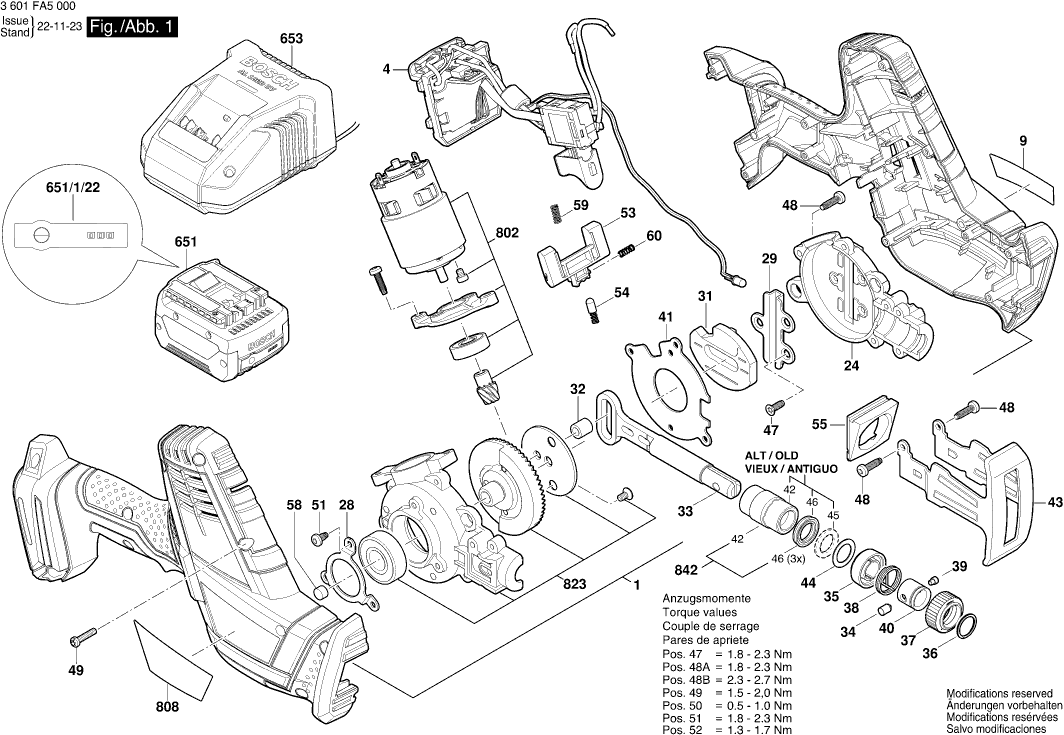 Spare parts list of model Bosch 3601FA5000 ( GSA18V-LIC )