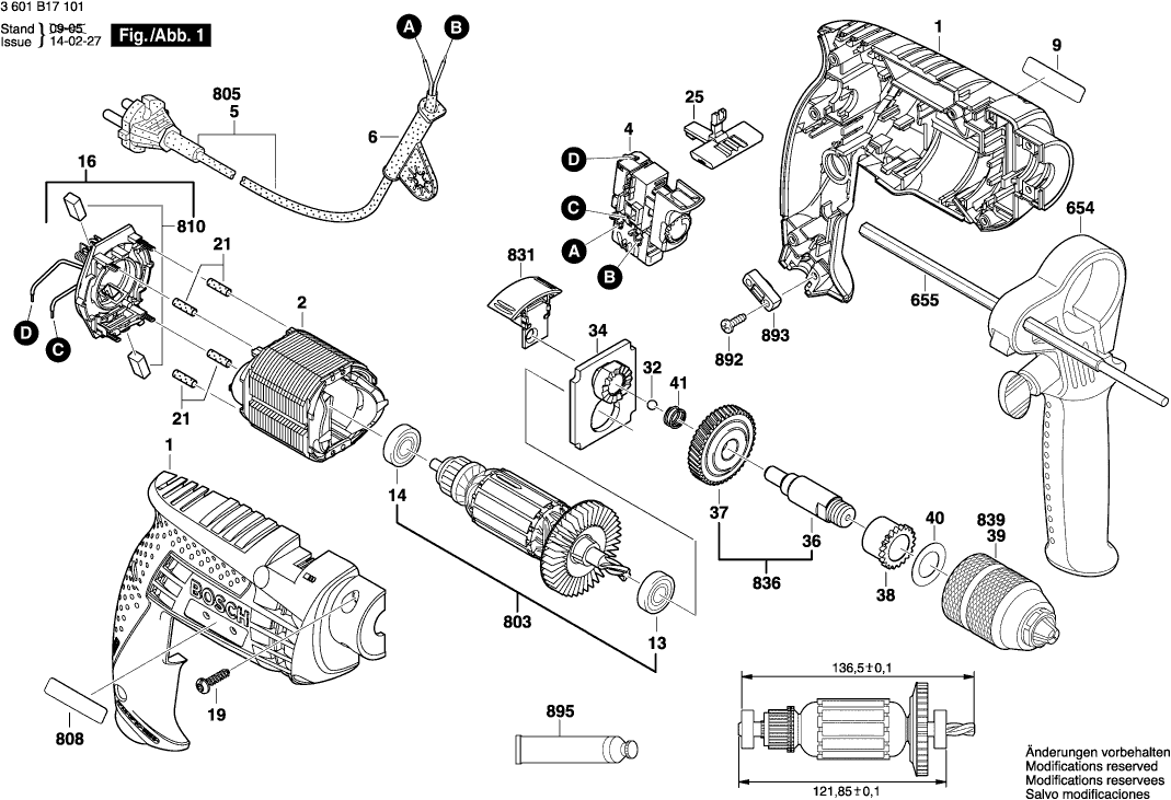 Technical drawing of model Bosch 3601B17101 ( GSB13RE )