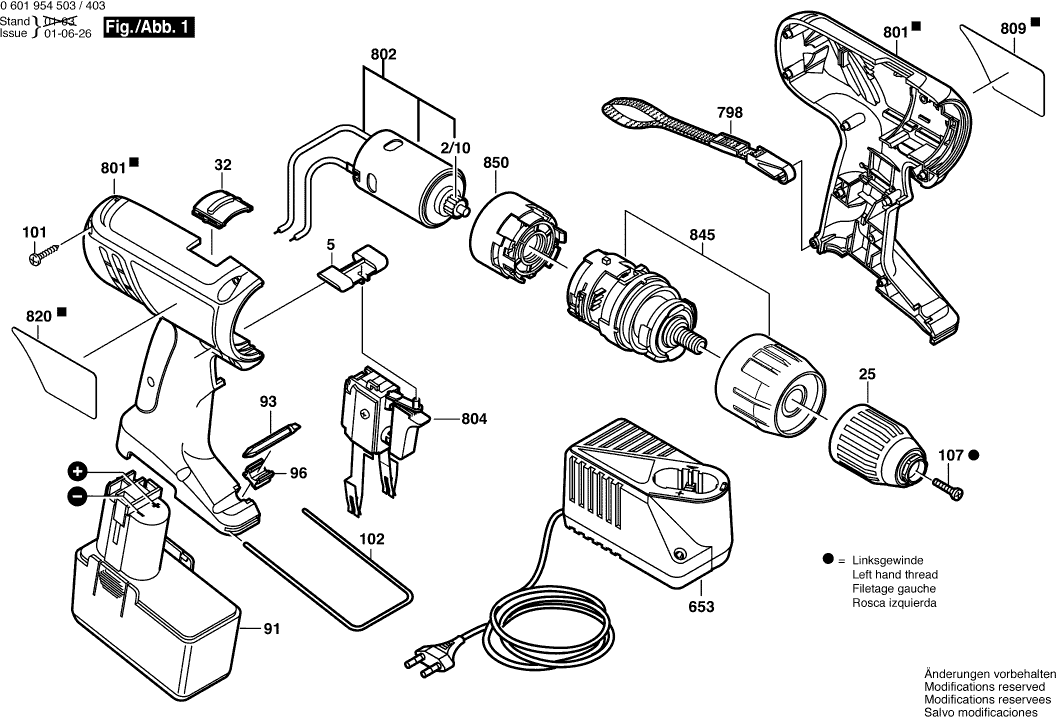 Spare parts list of model Bosch 06019544AE ( GSB14,4VE-2 )