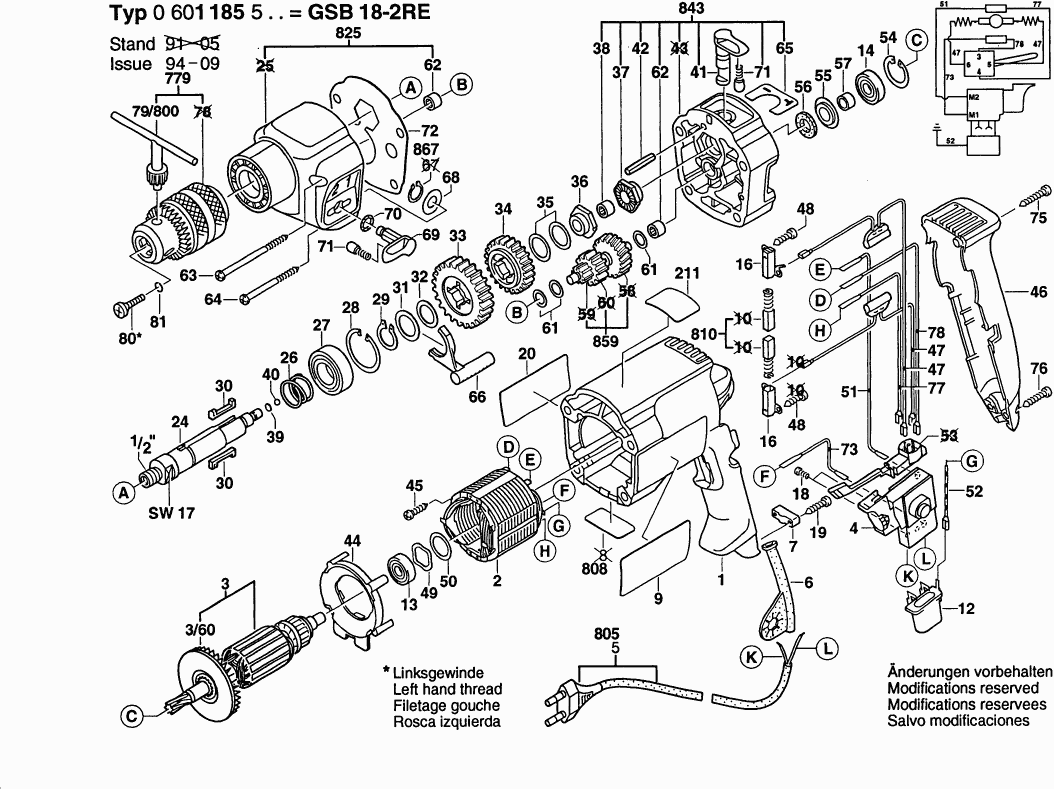 Here you will find all available parts and drawings of the 'Bosch 0601185503 ( GSB18-2RE )'. From here you can order all desired parts directly. Many parts must be ordered from the manufacturer, depending on the brand, this takes one to four weeks. All the information we have is on our website, we cannot advise you on what you need, for that you will need to return the machine for repair. Please note the following when ordering: