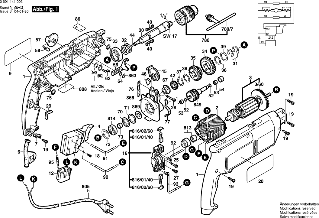 Technical drawing of model Bosch 0601141063 ( GSB18-2 )