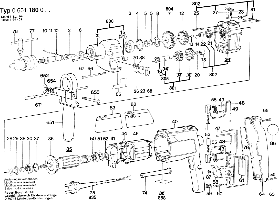 Spare parts list of model Bosch 0601180003 ( GSB18-2 )