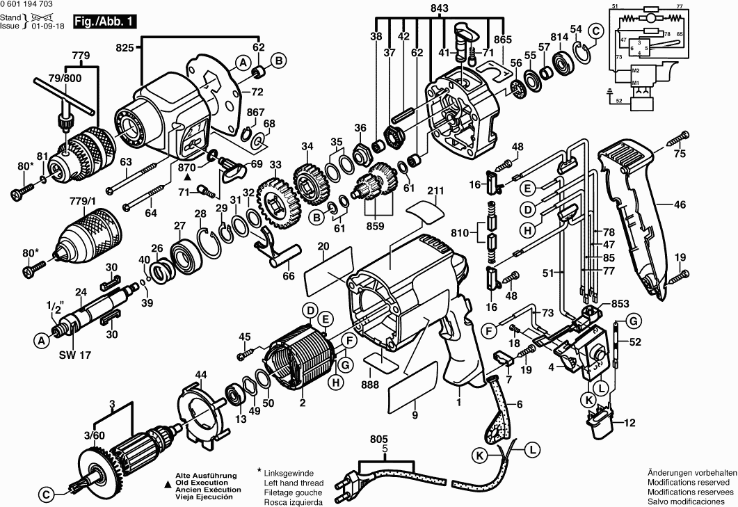 Technical drawing of model Bosch 0601194703 ( GSB20-2RE )