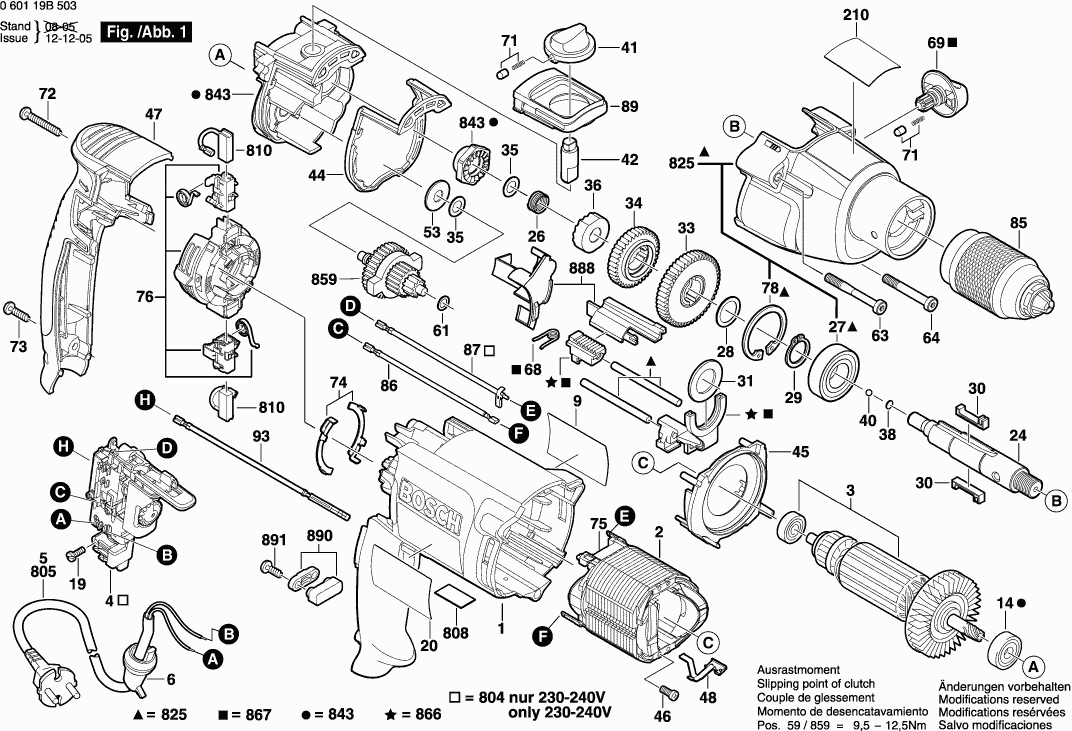 Spare parts list of model Bosch 060119B503 ( GSB20-2RE )
