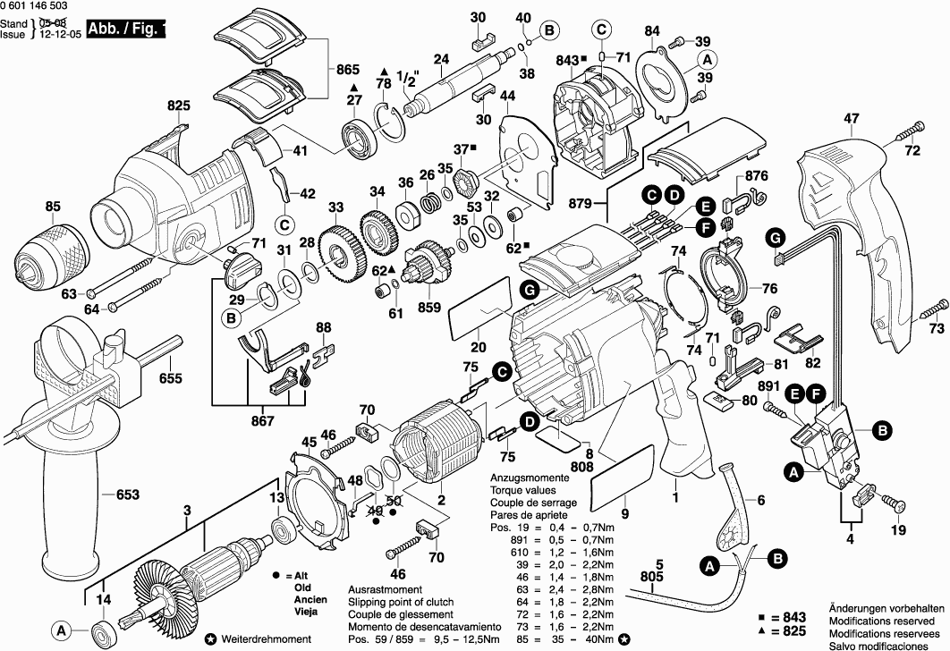 Spare parts list of model Bosch 0601146503 ( GSB22-2RE )