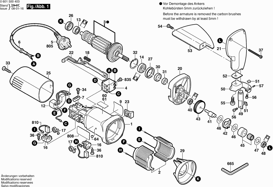 Technical drawing of model Bosch 0601500403 ( GSC160 )