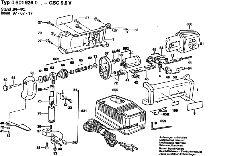 Spare parts list of model Bosch 0601926027 ( GSC9,6V )