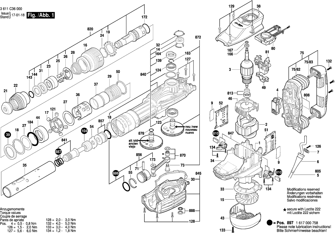 Spare parts list of model Bosch 3611C36000 ( GSH11VC )