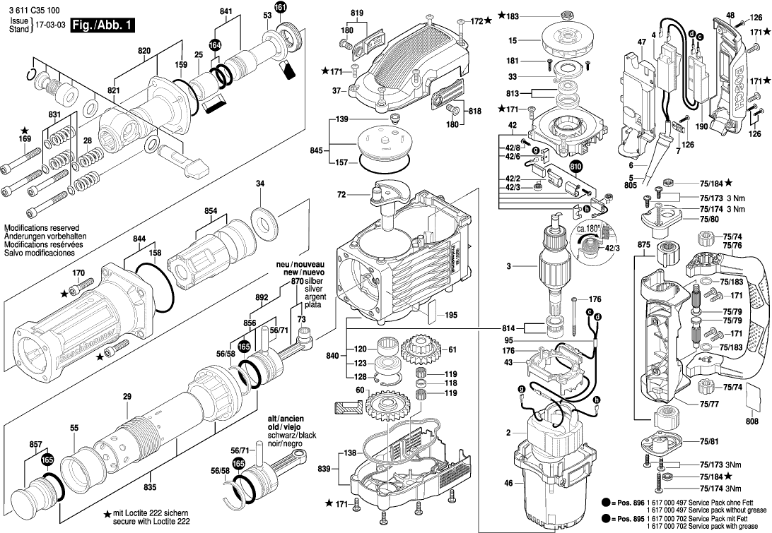 Here you will find all available parts and drawings of the 'Bosch 3611C35100 ( GSH16-30 )'. From here you can order all desired parts directly. Many parts must be ordered from the manufacturer, depending on the brand, this takes one to four weeks. All the information we have is on our website, we cannot advise you on what you need, for that you will need to return the machine for repair. Please note the following when ordering:
