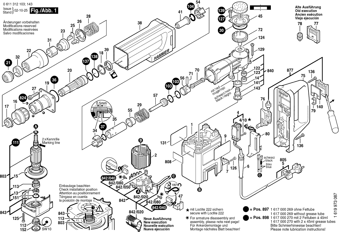 Technical drawing of model Bosch 0611312103 ( GSH4 )