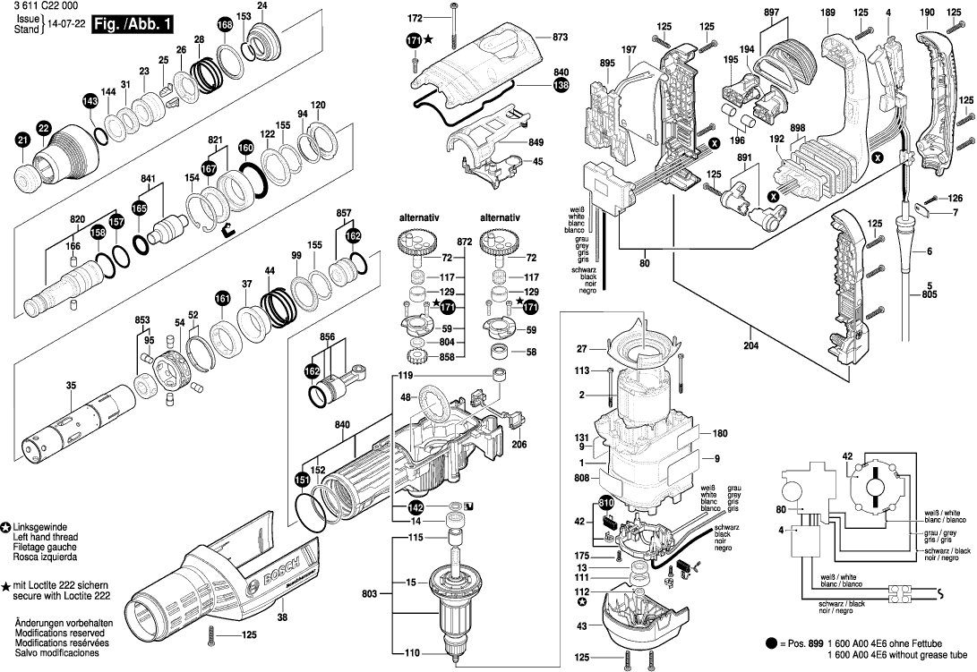 Spare parts list of model Bosch 3611C22000 ( GSH7VC )