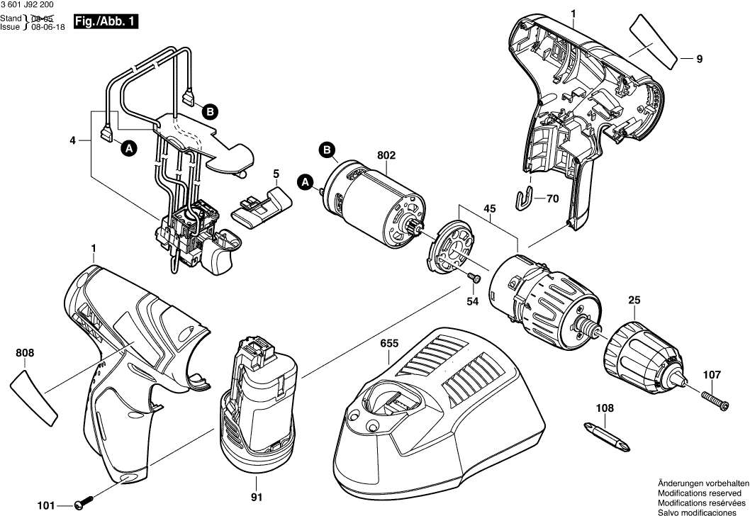 Technical drawing of model Bosch 3601J92200 ( GSR10,8V-LIQ )