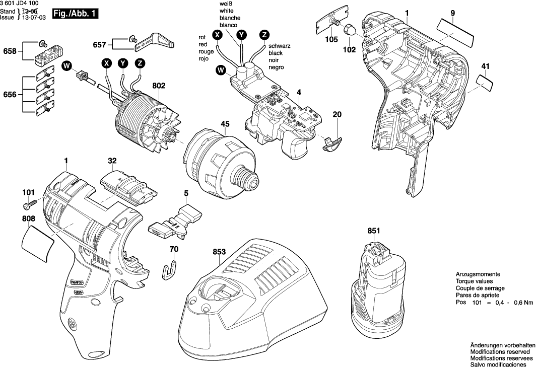 Technical drawing of model Bosch 3601JD4100 ( GSR10,8V-ECHX )