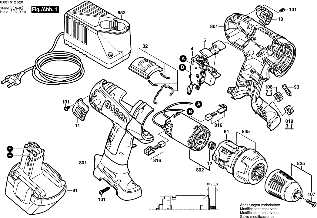 Technical drawing of model Bosch 0601912520 ( GSR12VE-2 )