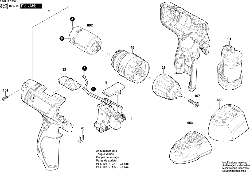 Technical drawing of model Bosch 3601JF7080 ( GSR120-LI )