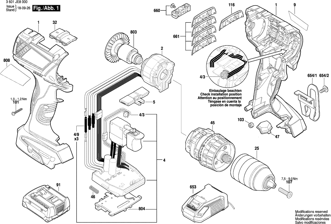 Technical drawing of model Bosch 3601JE8000 ( GSR14,4V-EC )