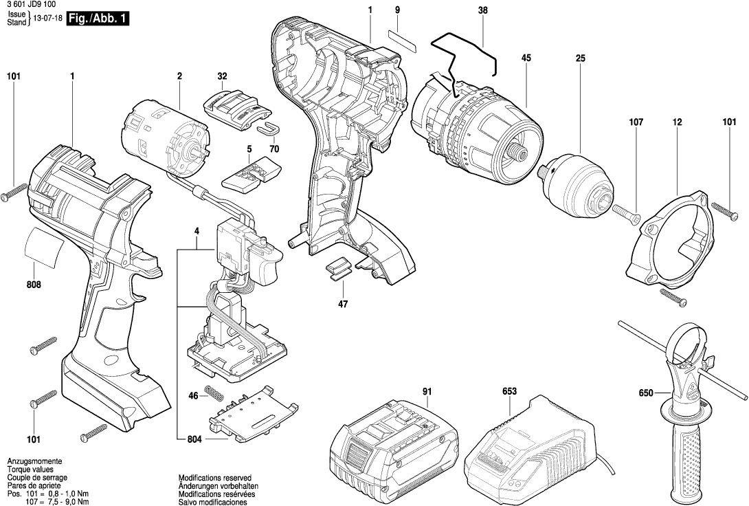 Spare parts list of model Bosch 3601JD9100 ( GSR18VE-2-LI )