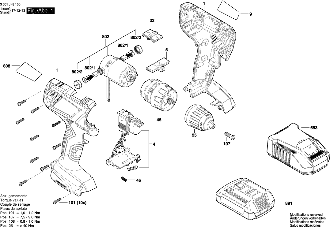 Technical drawing of model Bosch 3601JF8100 ( GSR180-LI )