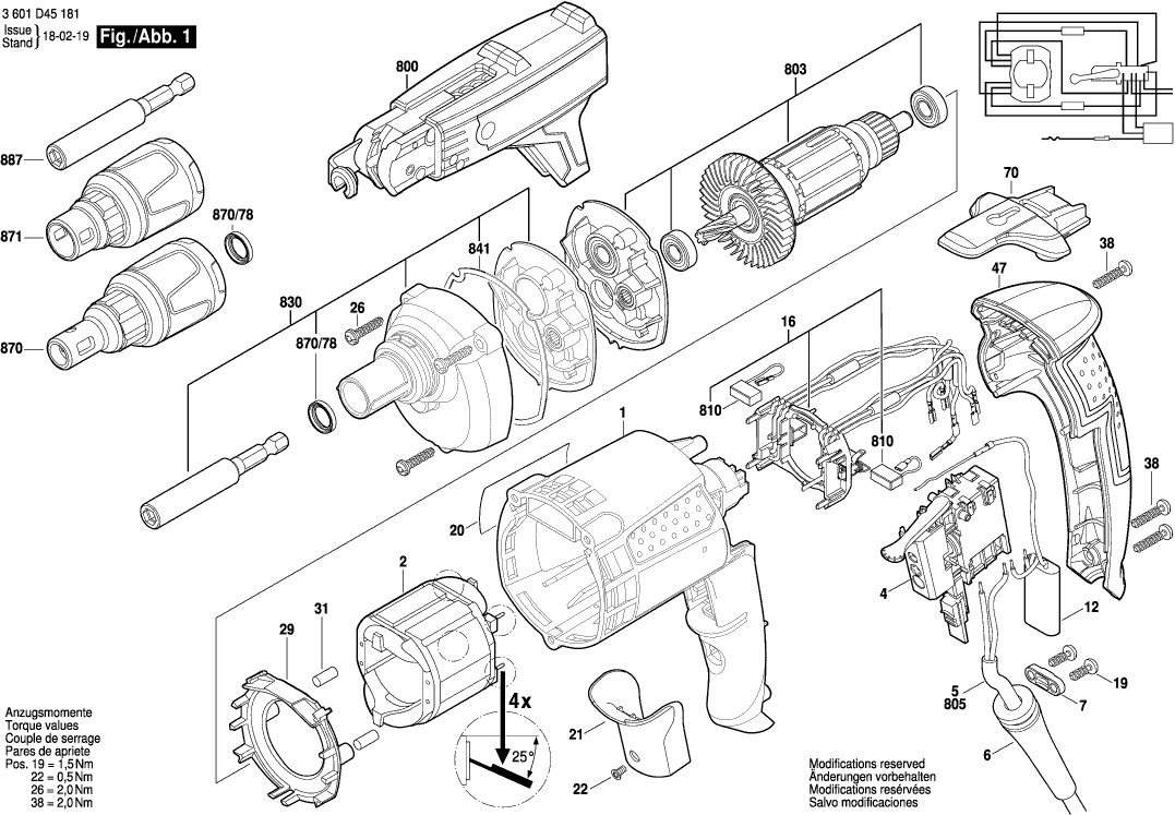 Technical drawing of model Bosch 3601D451H1 ( GSR6-45TE )