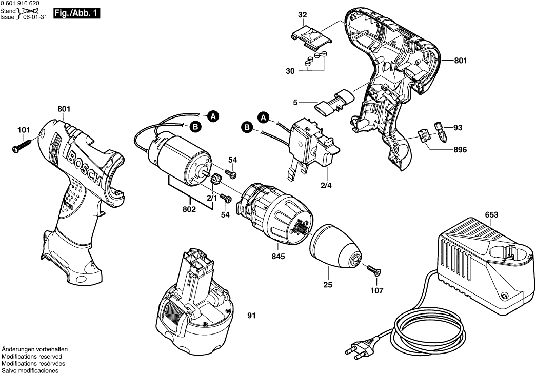Spare parts list of model Bosch 0601916630 ( GSR9,6V )