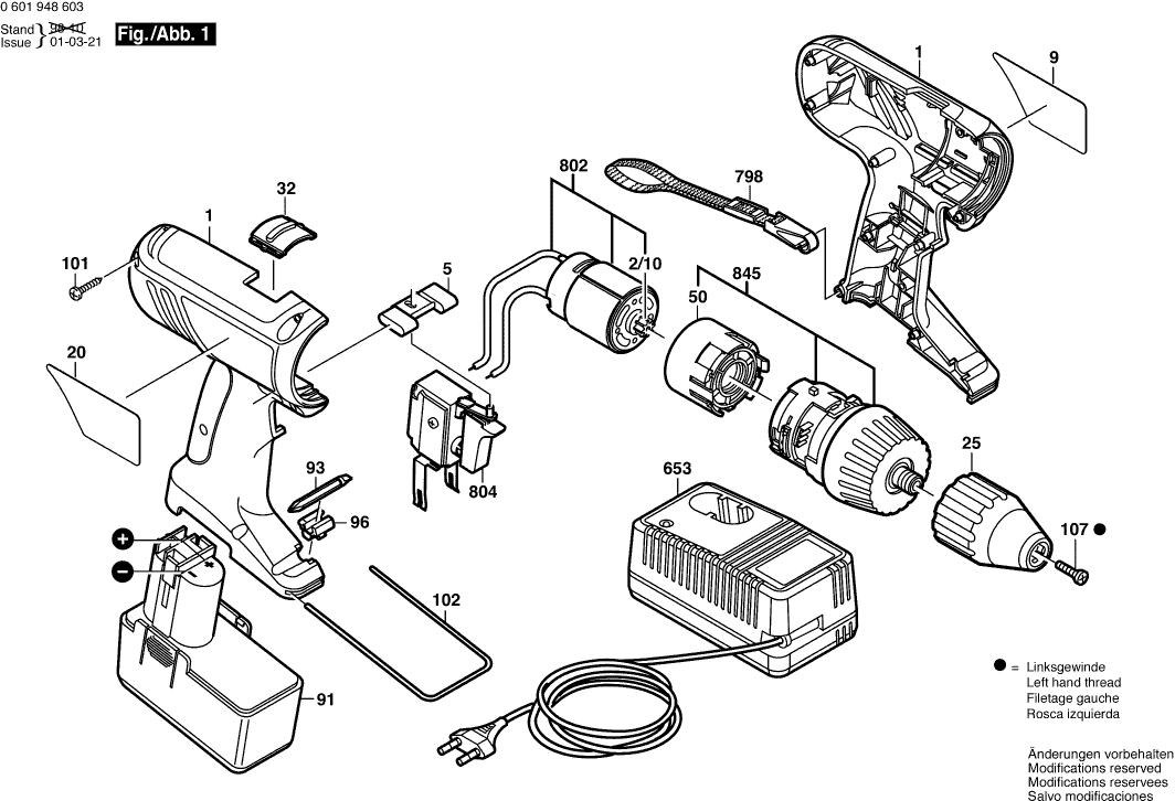 Spare parts list of model Bosch 0601948655 ( GSR9,6VE-2 )