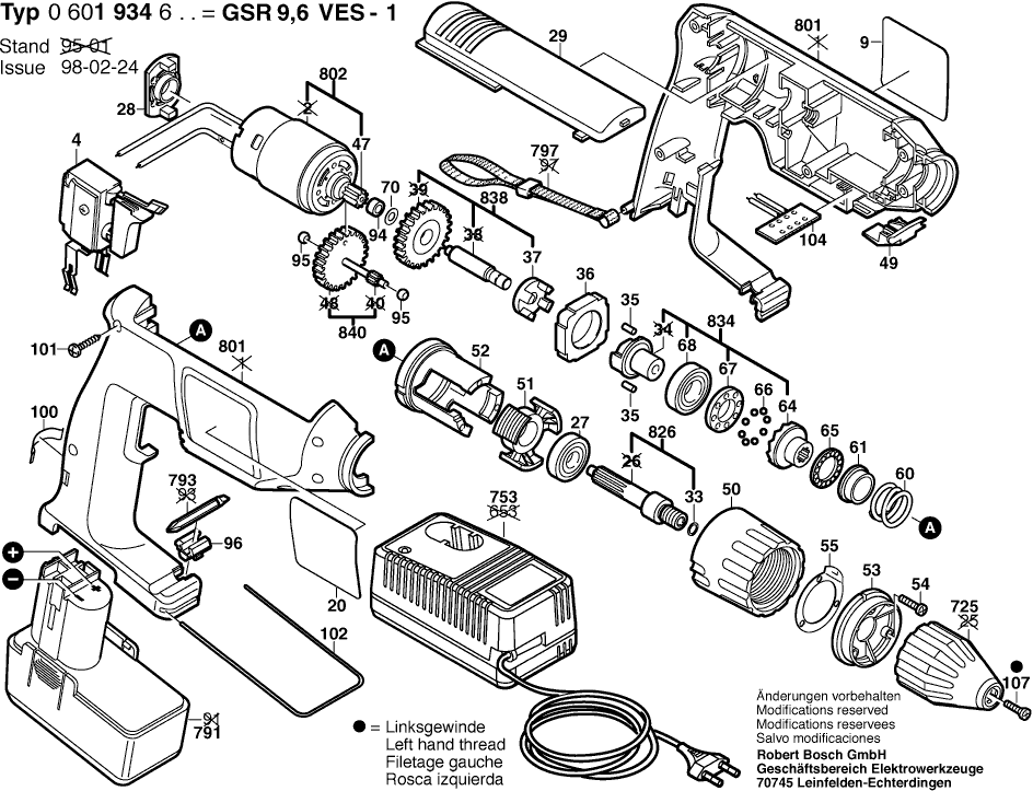 Spare parts list of model Bosch 0601934666 ( GSR9,6VES-1 )