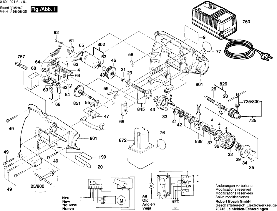 Spare parts list of model Bosch 0601921966 ( GSR9,6VES )