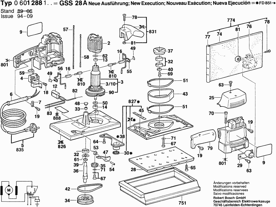 Spare parts list of model Bosch 0601288103 ( GSS28A )