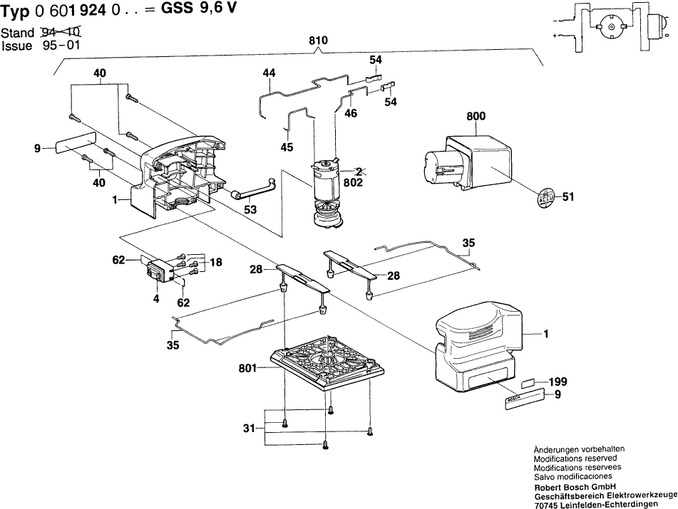 Spare parts list of model Bosch 0601924027 ( GSS9,6V )