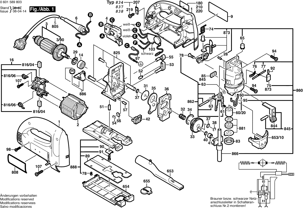 Here you will find all available parts and drawings of the 'Bosch 0601589808 ( GST100BCE )'. From here you can order all desired parts directly. Many parts must be ordered from the manufacturer, depending on the brand, this takes one to four weeks. All the information we have is on our website, we cannot advise you on what you need, for that you will need to return the machine for repair. Please note the following when ordering: