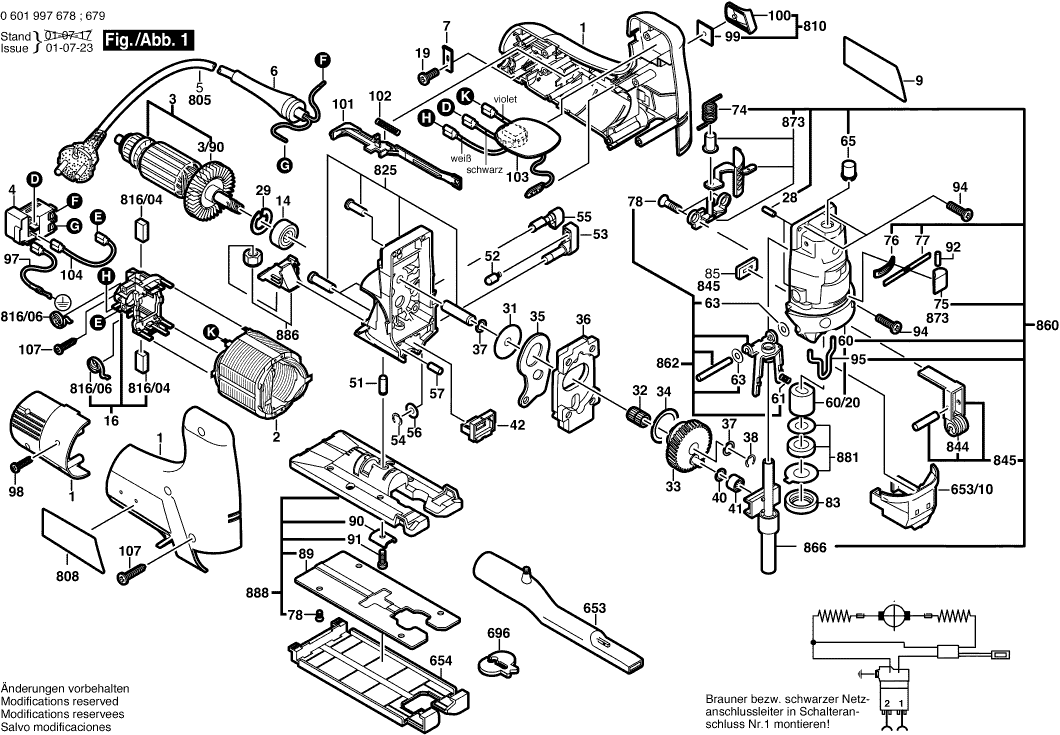 Here you will find all available parts and drawings of the 'Bosch 0601997679 ( GST100CE )'. From here you can order all desired parts directly. Many parts must be ordered from the manufacturer, depending on the brand, this takes one to four weeks. All the information we have is on our website, we cannot advise you on what you need, for that you will need to return the machine for repair. Please note the following when ordering: