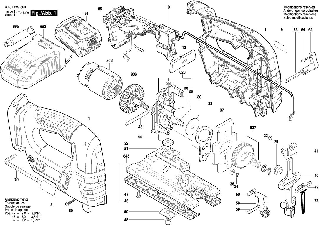 Here you will find all available parts and drawings of the 'Bosch 3601E8J300 ( GST18V-LI )'. From here you can order all desired parts directly. Many parts must be ordered from the manufacturer, depending on the brand, this takes one to four weeks. All the information we have is on our website, we cannot advise you on what you need, for that you will need to return the machine for repair. Please note the following when ordering: