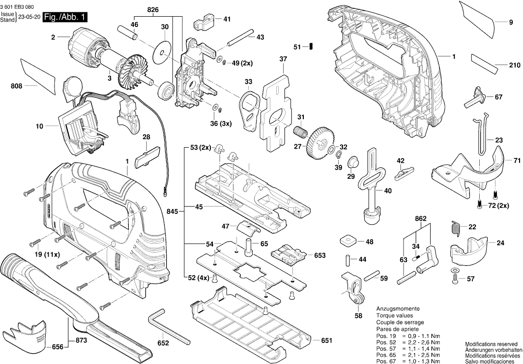 Technical drawing of model Bosch 3601EB3000 ( GST18V-125B )